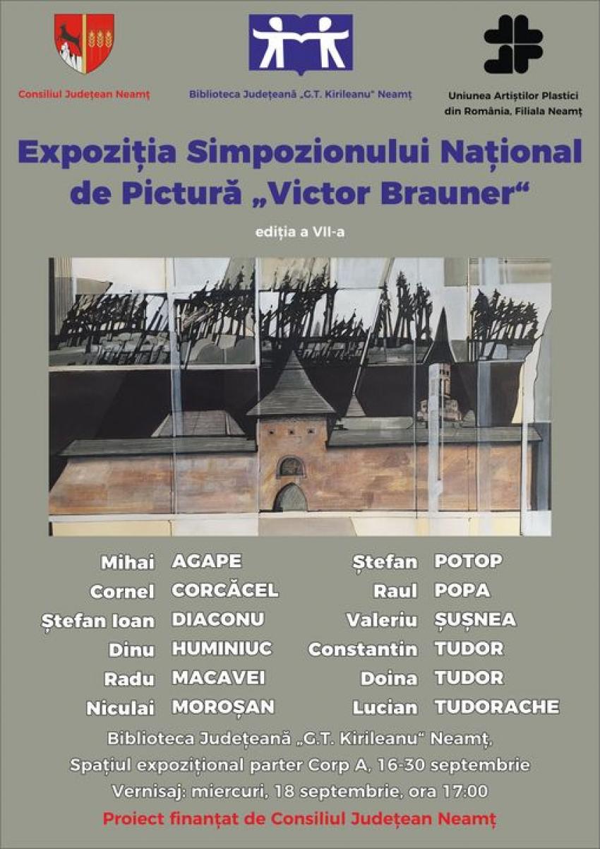 Biblioteca Județeană „G.T.KIRILEANU” găzduiește expoziția Simpozionului Național de Pictură „Victor Brauner”, ediția a VII-a, în spațiul expozițional de la parterul Corpului A, până pe data de 30 septembrie 2024.