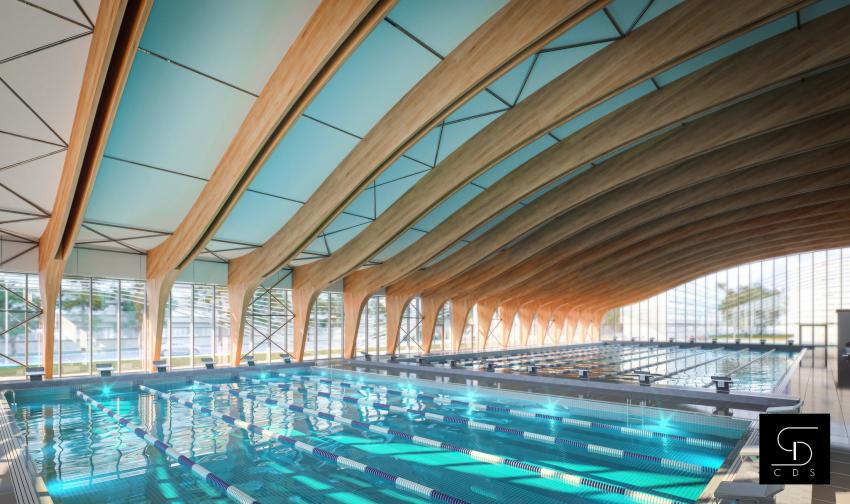 • Bazin Olimpic și Semiolimpic: clădire S+P+2E+Etaj Tehnic, ce include bazin olimpic și semiolimpic, cu o capacitate de 740 de locuri în gradene, omologabil pentru competiții naționale și internaționale, dotat cu vestiare cu o capacitate de 210 locuri pentru sportivi si 50 locuri pentru arbitri si antrenori, săli de fitness și spații administrative.