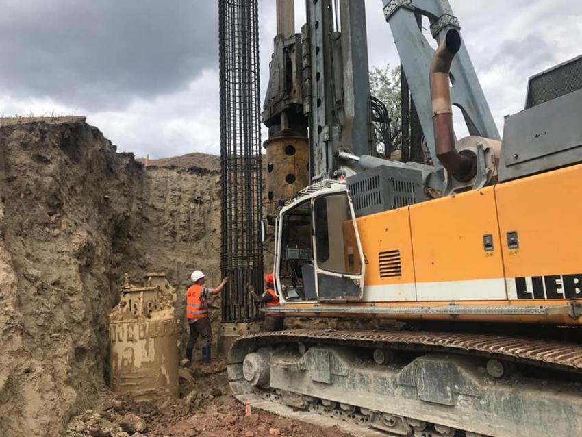 Constructorul angajat de Consiliul Județean a demarat lucrările la pilonul central și la primul picior ale podului.