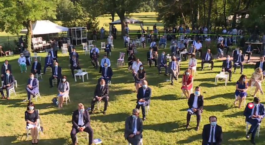 Președintele Iohannis este clar cu mintea la crosă, nu la firmele locale, iar cei câteva zeci de liberali plictisiți de audiență rezistă doar cu gândul la cocktailul de după.