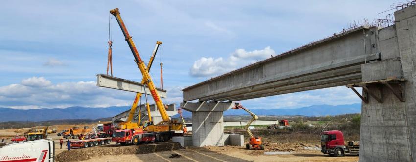Luni, 18 martie, s-a finalizat montarea tuturor grinzilor la pasajul rutier suprateran de la capătul centurii Beiuș, la Drăgănești.