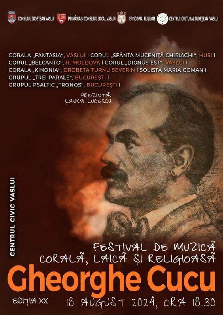 Consiliul Județean Vaslui, Episcopia Hușilor, Primăria Municipiului Vaslui și Centrul Cultural Județean Vaslui a organizat, pe 18 august, Festivalul de muzică corală laică și religioasă „Gheorghe Cucu”.