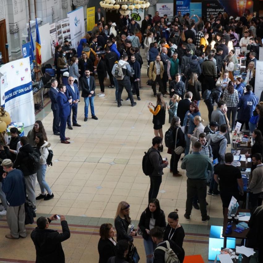 Centrul de Consiliere și Orientare în Carieră - UDJG a organizat astăzi, 28 octombrie 2022, Târgul de joburi pentru studenții și absolvenții Universității „Dunărea de Jos” din Galați. Evenimentul s-a desfășurat în holul Universității, unde au participat peste 35 de firme, companii și instituții care și-au prezentat ofertele de stagii de practică, internshipuri, joburi part-time sau full-time, precum și alte informații de interes pentru participanți.