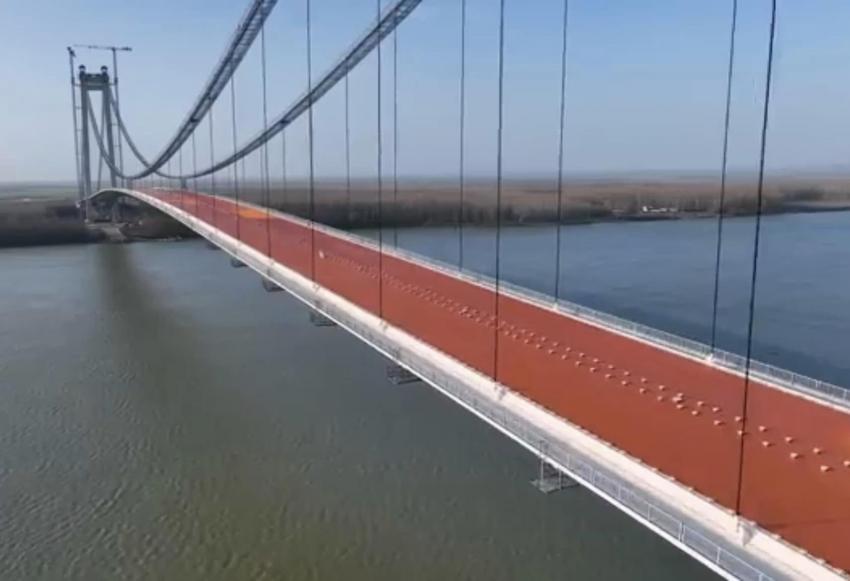 În zona podului suspendat: se realizează armarea, cofrarea și turnarea ultimelor două porțiuni din placa de suprabetonare a structurilor blocului de ancoraj Jijila; se montează elemente ale sistemului de dezumidificare aferent cablului principal; se realizează aplicarea primului strat (primer) aferent hidroizolației; se execută, săpătura, armarea, cofrarea și betonarea grinzilor de bază aferente Turnurilor Jijila și Brăila, acestea fiind ultimele elemente de structură ale pilonilor.