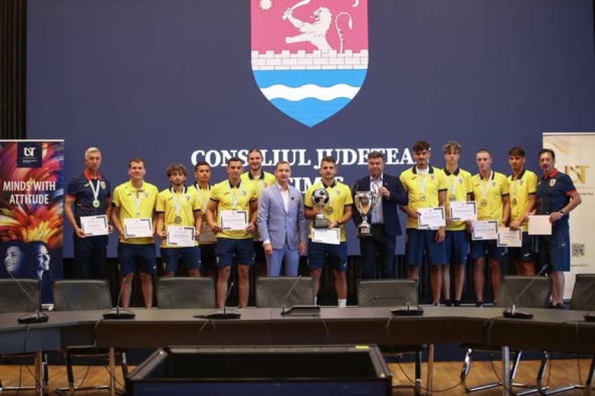 În semn de recunoștință pentru reușita internațională, jucătorii echipei UVT au primit din partea președintelui CJ Timiș diplome de merit și un trofeu pentru activitatea sportivă remarcabilă.