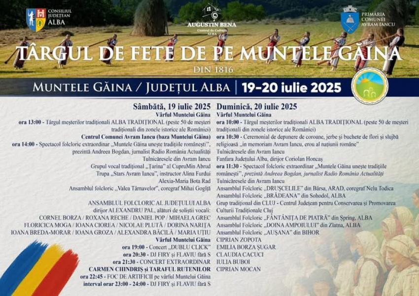Evenimentul din 2025 păstrează specificul autentic al celei mai cunoscute întâlniri populare de pe muntele sacru al moților și îi invită pe toți cei care iubesc tradiția, portul popular și muzica românească la un sfârșit de săptămână de poveste, unde oamenii se adună „la Găina” din toate colțurile țării.