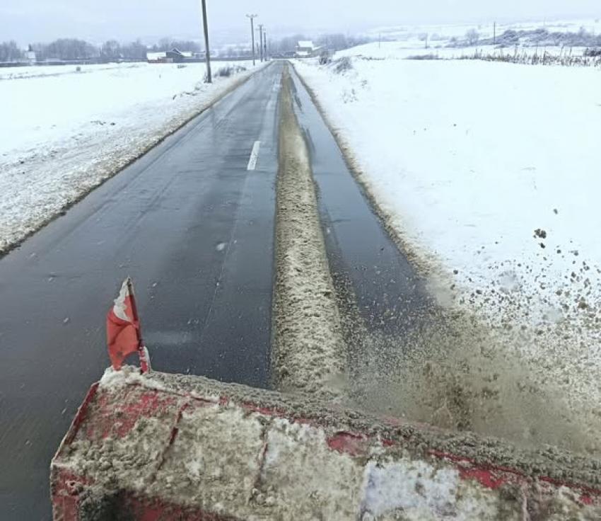 Peste 50 de utilaje au fost mobilizate pentru deszăpezire și împrăștierea materialului antiderapant, iar la această oră nu există drumuri județene blocate.